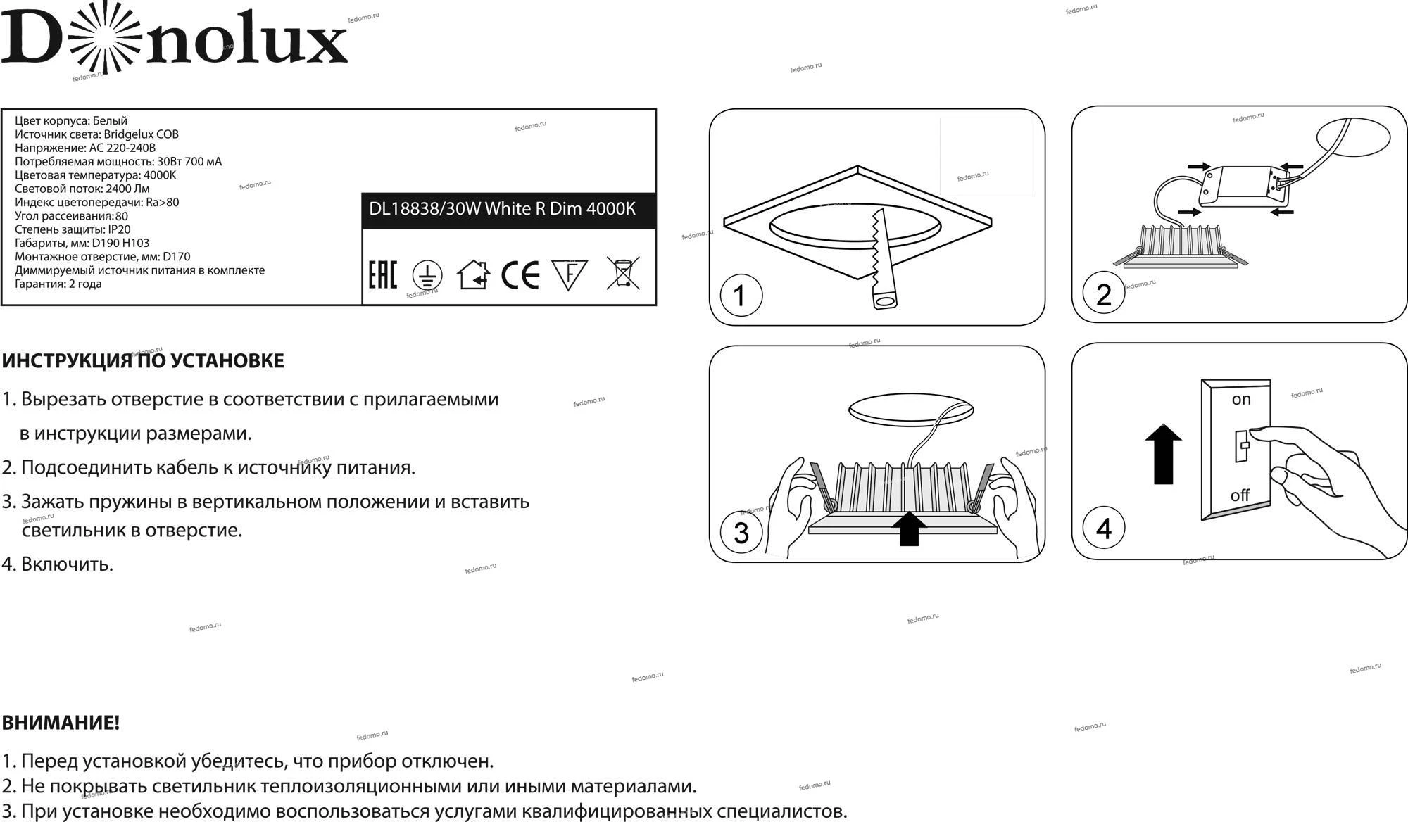Donolux DL18838 DL18838/30W White R Dim 4000K