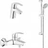 Душевой комплект Grohe Eurosmart 124446 от немецкого производителя Grohe выполнен в расцветке хром и будет отлично смотреться в современном интерьере. Материал изготовления - латунь. Душевой комплект округлой формы с глянцевой поверхностью имеет , излив традиционной формы с фиксированным вращением, пластиковый шланг и рычажное управление. Рычаг расположен сверху. В качестве механизма используется керамический картридж. Длина шланга - 175 см. Расход воды составляет 5.7 литров в минуту. Стандарт подводки 1/2". Оснащение модели: держатель для душа, 2-позиционный смеситель, дивертор, эксцентрики, аэратор, излив для наполнения ванны. Дополнительные функции: экономия воды, ограничение температуры, защита от обратного потока, 1 режим струи. Гарантия на изделие составляет 5 лет. Заказывайте Grohe 124446 онлайн по низкой цене с гибкими условиями доставки на Fedomo.ru!