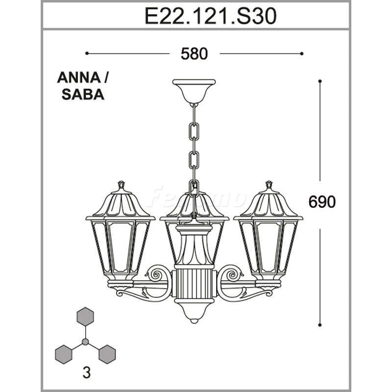 E22.120.S30.AYE27 Люстра подвесная уличная Fumagalli Sichem Anna, 3 плафона, черный с белым