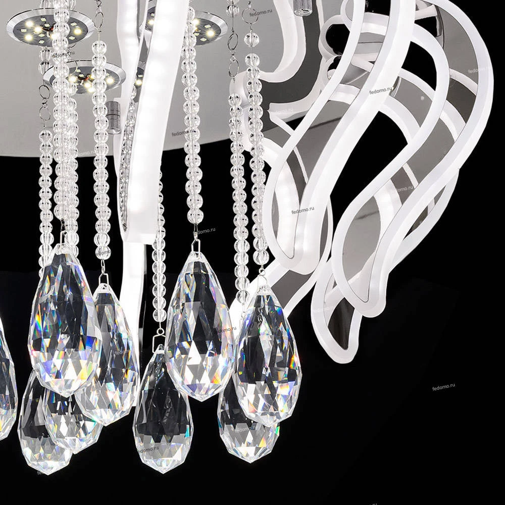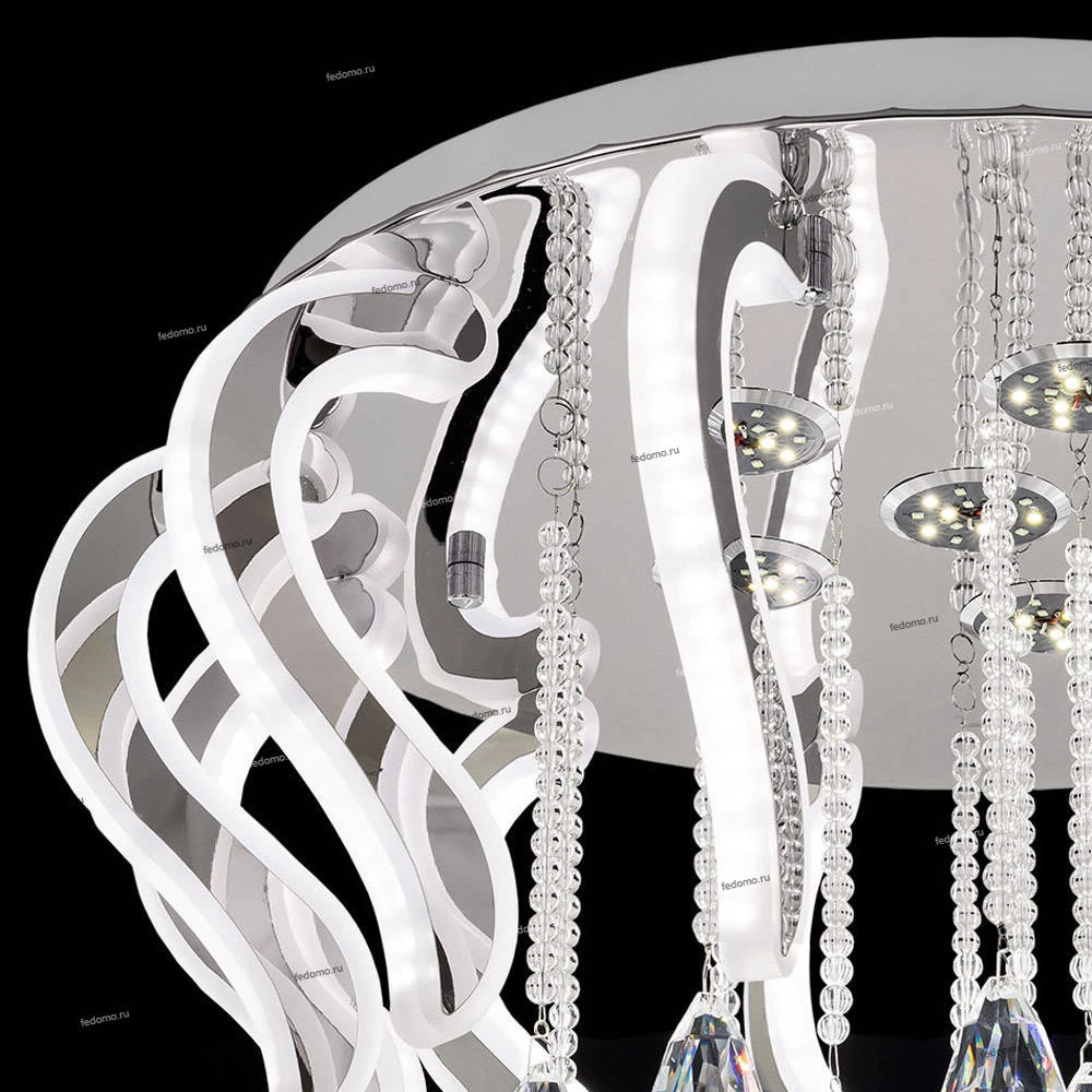 Диаметр 60см, Высота 35см, Синхронное или раздельное управление с пульта ДУ центральной (24W для подсветки хрусталя) и внешней (84W для общего освещения) группами светодиодов, Плавная регулировка яркости и цветовой температуры в диапазоне 3000-6500К, во