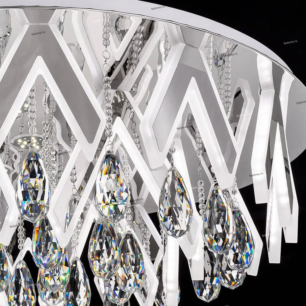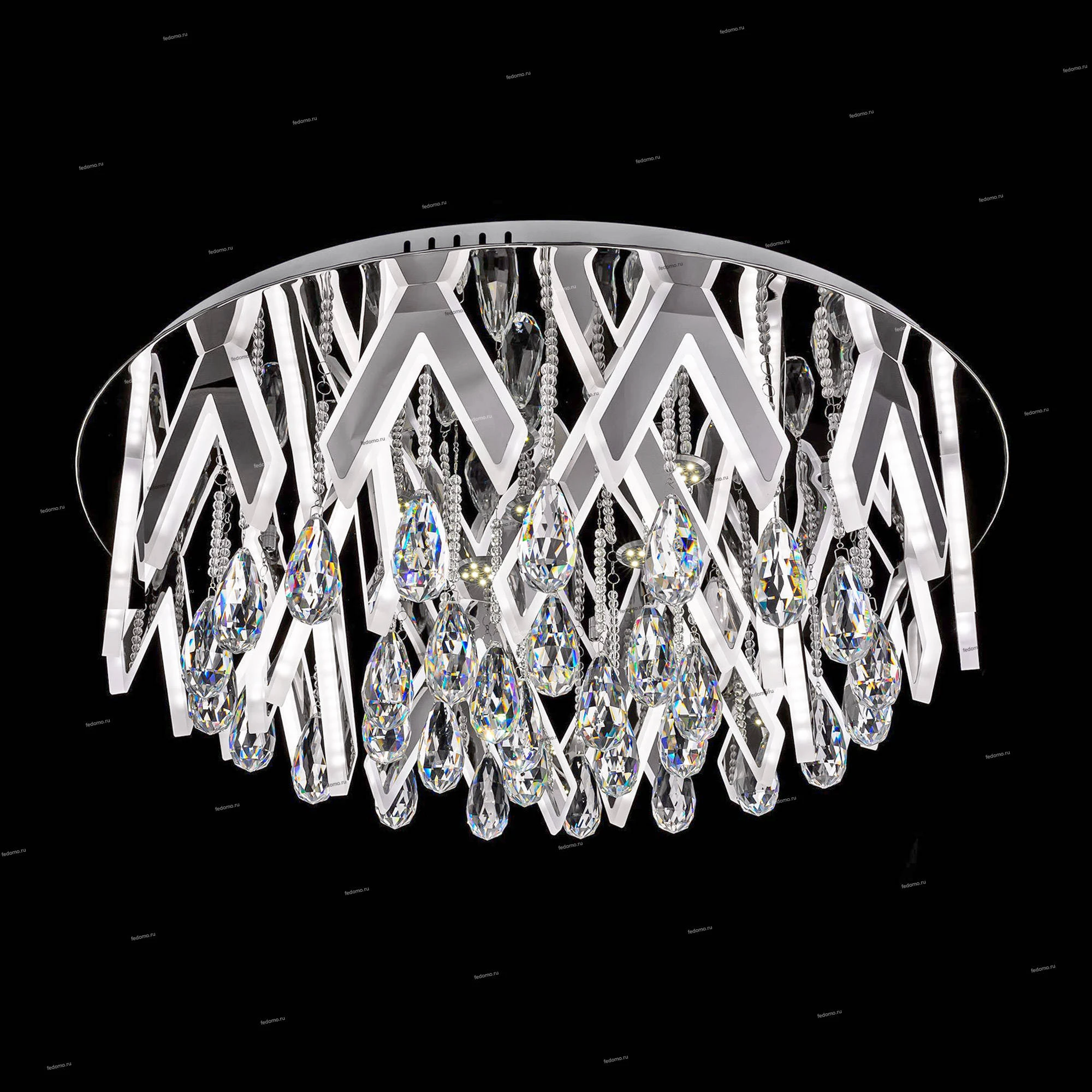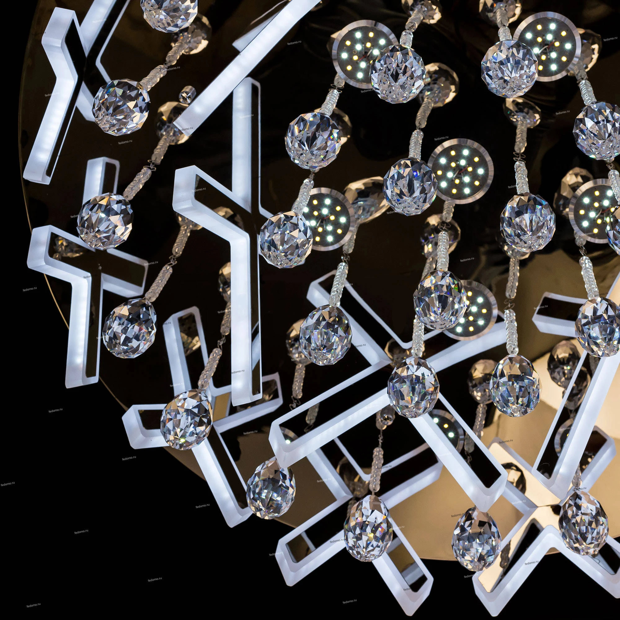 Диаметр 80см, Высота 26см, Синхронное или раздельное управление с пульта ДУ центральной (24W для подсветки хрусталя) и внешней (150W для общего освещения) группами светодиодов, Плавная регулировка яркости и цветовой температуры в диапазоне 3000-6500К, в