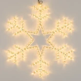 Светодиодная фигура СНЕЖИНКА. Размер 750x750 мм. Цвет светодиодов ТЕПЛЫЙ БЕЛЫЙ (3000 К), постоянное свечение. 324 светодиода. Напряжение питания 230 В, потребляемая мощность 18 Вт, степень пылевлагозащиты IP65. Фигура укомплектована проводом питания для подключения к сети 230 В (без вилки питания).