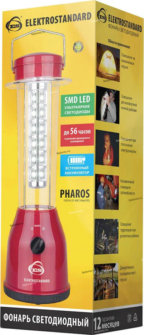 Кемпинговый фонарь FLK14-37-6W 24led RD Красный (Pharos) от компании Elektrostandard создаст уютное освещение в интерьере, оформленном в стиле современный. Светодиодный фонарь имеет 24 светодиода и цветовую температуру 6500K, световой индекс 360 lm, мощность 6W, напряжение 220V. Основной материал изделия - пластик. В комплекте прилагается сетевой провод, крюк. Габариты изделия: высота - 368 мм. Модель прослужит не менее 87600 часов. Лучшая цена и условия доставки на Elektrostandard FLK14-37-6W 24led RD Красный (Pharos) в интернет-магазине Fedomo.ru.