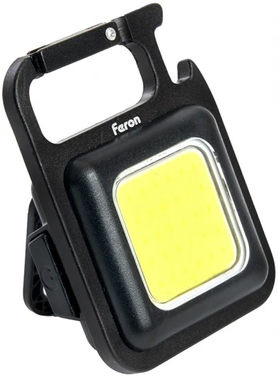 Фонарь с аккумулятором FERON TH2404 фонарь карманный, 1LED IP65, аккумулятор 3,7/500mAh/Li-ion, количество режимов 4, время зарядки 1 час, время работы 2 часа. Магнит, USB type-C,крюк, открывашка. 4 режима, 4 вида крепления
