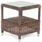 Кофейный стол из искусственного ротанга «Форио» отличается компактными размерами, ширина и глубина всего 450 мм, а высота 520 мм, что позволяет эксплуатировать его в ограниченном пространстве. Модель состоит из каркаса, обвитого вручную ротангом коричневого цвета. Данный образец обладает ударопрочной стеклянной 5 мм столешницей, конструкцией предусмотрена полочка для принадлежностей.