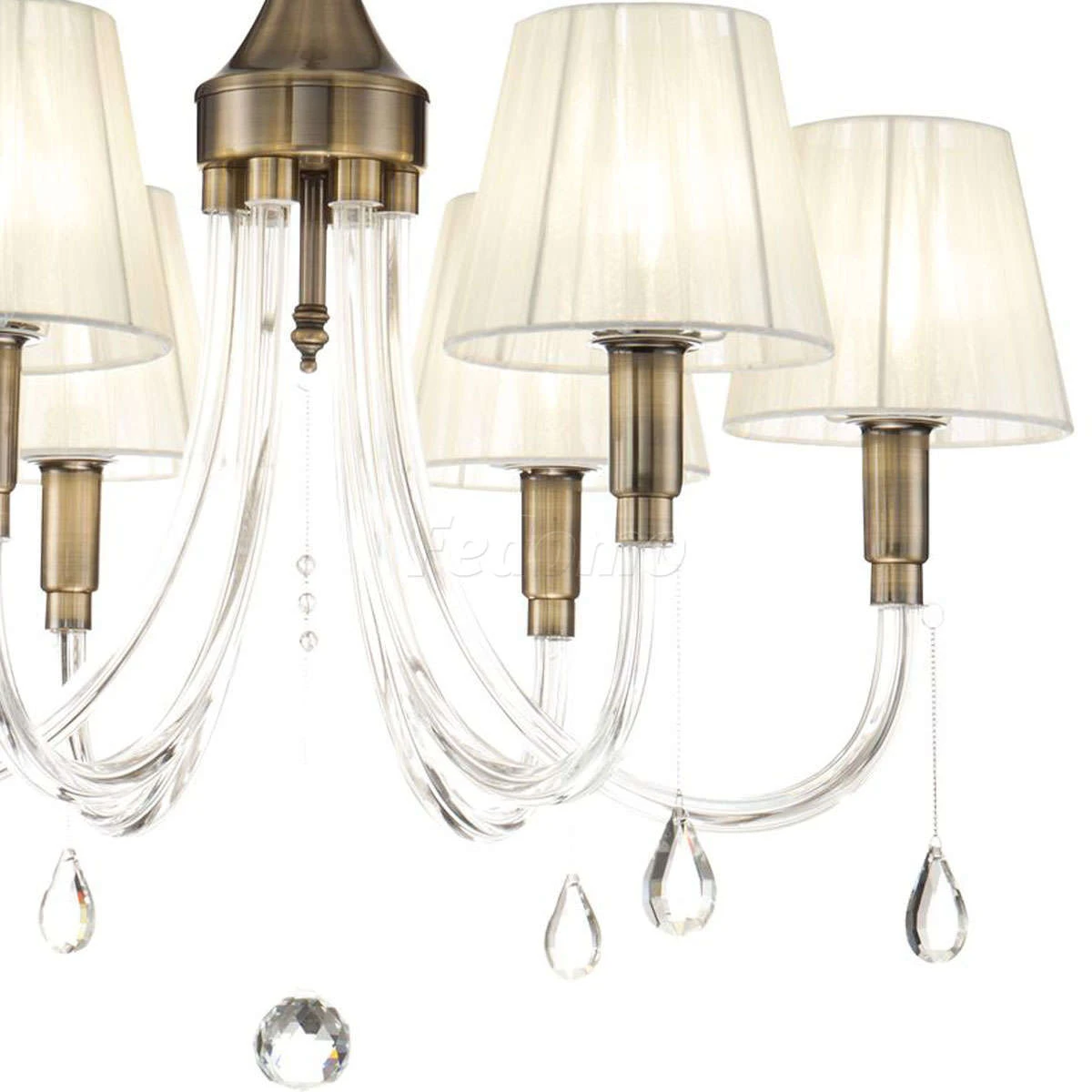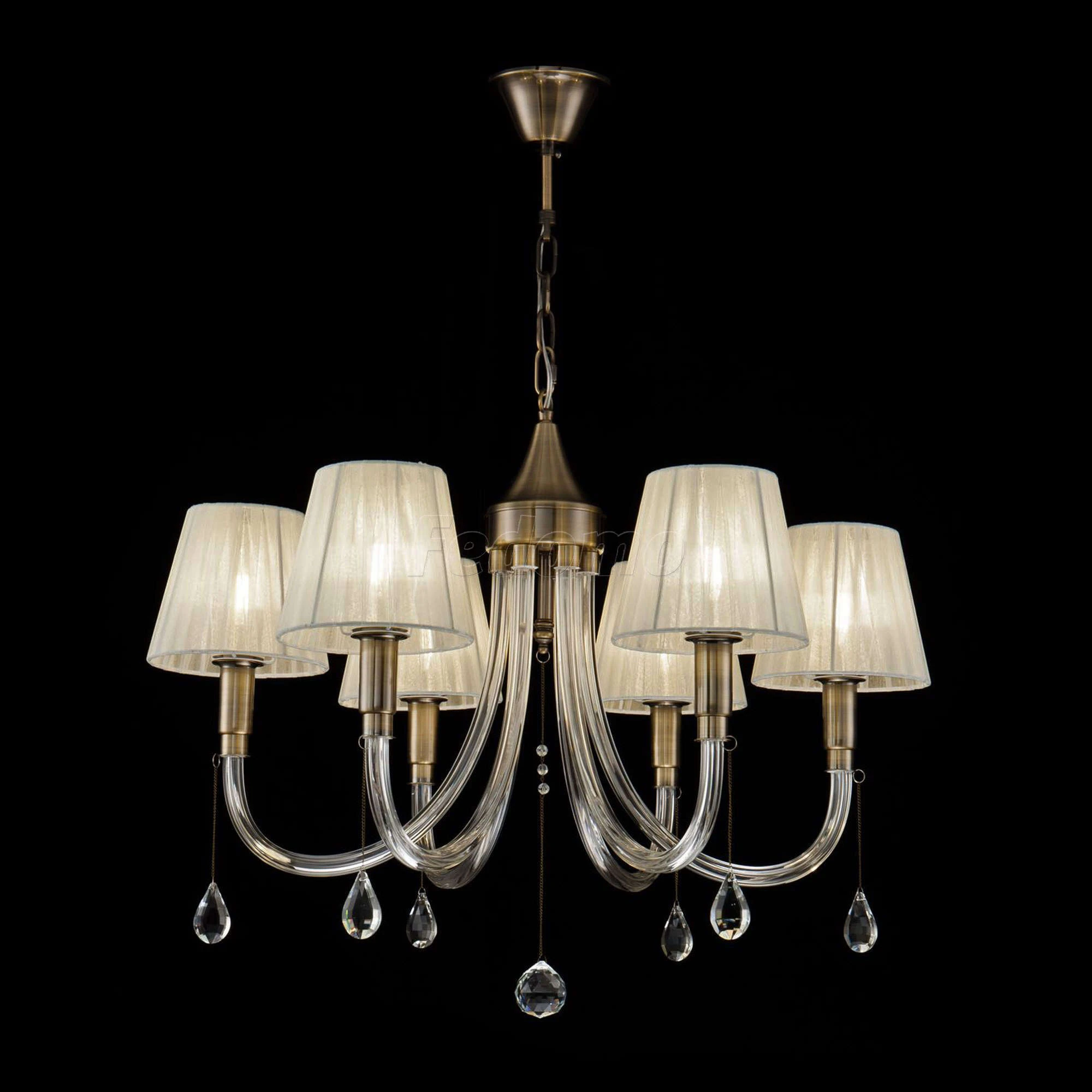 Элегантные светильники в классическом стиле. Металлическая арматура цвета бронзы оттеняет нежные абажуры из органзы цвета "шампань". Рожки сделаны из стекла и украшены подвесками.