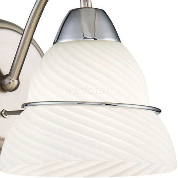 Серия светильников в современном стиле. Арматура сделана из металла, а плафоны - из белого матового стекла со спиральным рельефом. Каждый плафон украшен металлической полоской в тон арматуры.