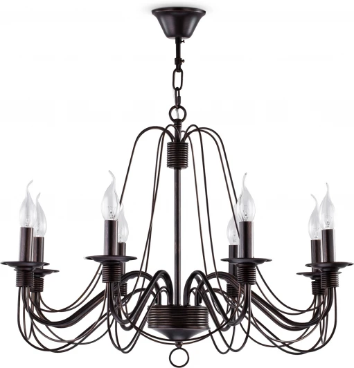 Люстра подвесная FR2046-PL-08-BR из серии Velia от компании Freya устанавливается на металлический крюк. Классическая люстра в виде подсвечника прекрасно подойдет в качестве источника основного света для гостиной, кафе, холла, оформленных в стиле кантри, лофт, замковый. Основной цвет модели - черный, материал арматуры - металл. Модель оснащена цоколем E14 (8xE14), имеет 8 лампочек с общей мощностью 480W и напряжением 220V. Светильник поддерживает подключение диммера. Габариты: высота - 520 мм, диаметр - 720 мм. Лампочки в комплект не входят. Лучшая цена и условия доставки на Freya FR2046-PL-08-BR в интернет-магазине Fedomo.ru.