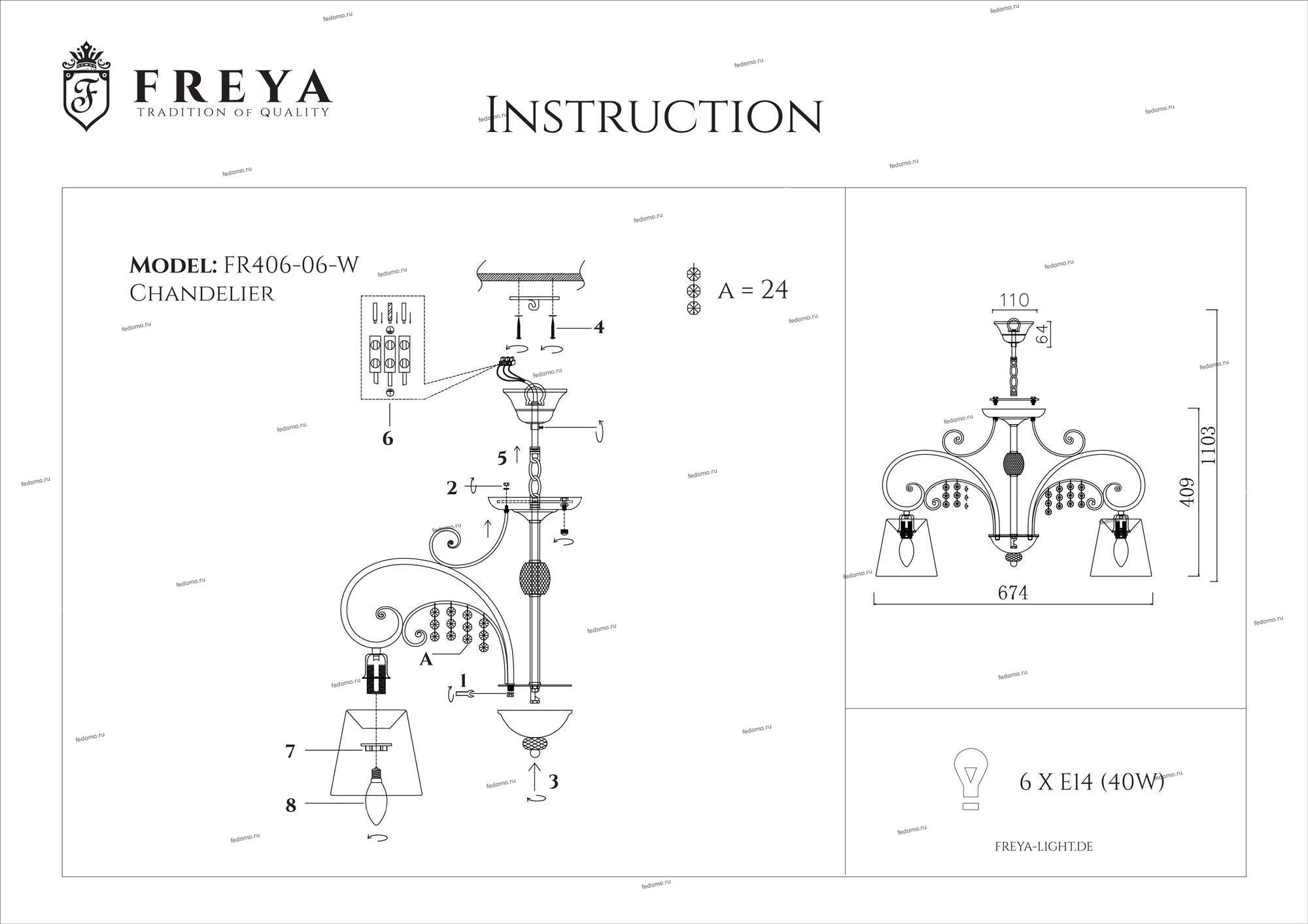 Люстра потолочная FR2406-PL-06-WG из серии Lorette от компании Freya устанавливается на металлический крюк или монтажную пластину. Классическая люстра прекрасно подойдет в качестве источника основного света для гостиной, кабинета, кафе, холла, спальни, оформленных в стиле прованс. Основной цвет модели - белый, материал арматуры - металл. Люстра имеет 6 абажуров со свечением вниз, материал изготовления - матовая ткань. Модель оснащена цоколем E14 (6xE14), имеет 6 лампочек с общей мощностью 240W и напряжением 220V. Светильник поддерживает подключение диммера. Габариты: высота - 490 мм, диаметр - 670 мм. Лампочки в комплект не входят. Лучшая цена и условия доставки на Freya FR2406-PL-06-WG в интернет-магазине Fedomo.ru.