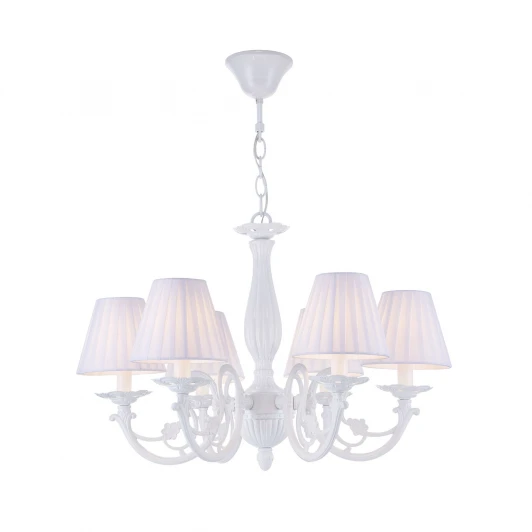 Люстра подвесная FR2686PL-06W из серии Jasmine от компании Freya регулируется по высоте и устанавливается на металлический крюк. Классическая люстра прекрасно подойдет в качестве источника основного света для гостиной, кафе, кухни, над обеденным столом, оформленных в стиле прованс. Основной цвет модели - белый, материал арматуры - металл. Люстра имеет 6 абажуров со свечением вверх, материал изготовления - матовая ткань. Модель оснащена цоколем E14 (6xE14), имеет 6 лампочек с общей мощностью 240W и напряжением 220V. Светильник поддерживает подключение диммера. Габариты: высота - 411 мм, диаметр - 620 мм. Лампочки в комплект не входят. Лучшая цена и условия доставки на Freya FR2686PL-06W в интернет-магазине Fedomo.ru.