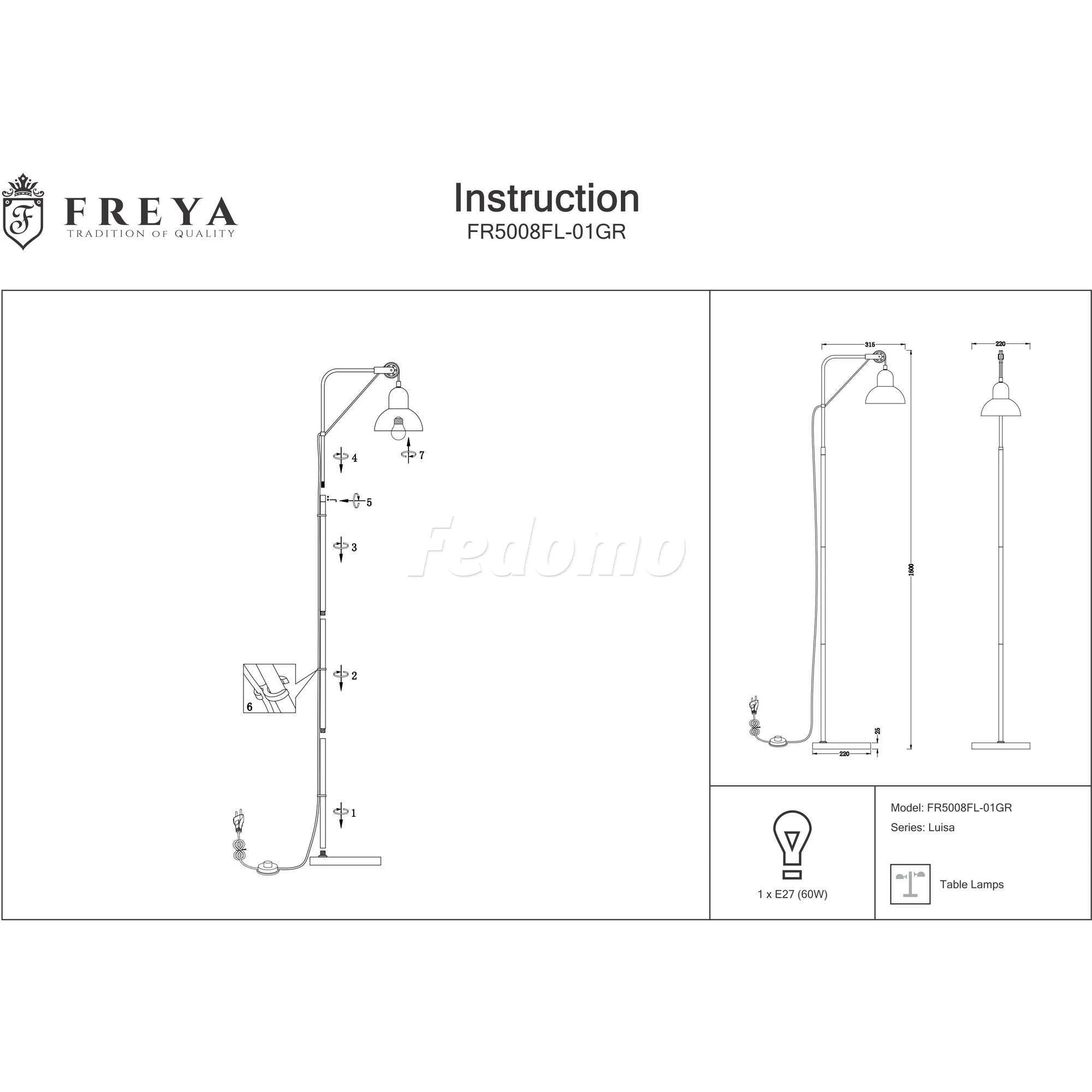 Торшер FR5008FL-01GR из серии Luisa от компании Freya будет удачно смотреться на полу в гостиной, спальне, кабинете, оформленных в стиле модерн. Торшер изогнутый в виде фонаря имеет 1 плафон и 1 лампочку с цоколем E27, мощностью 60W и напряжением 220V. Модель устанавливается на основание, есть возможность подключения диммера. Основной материал и цвет арматуры - серый металл, материал плафона - металл. Торшер оборудован ножным выключателем. Габариты изделия: ширина - 220 мм, высота - 1600 мм. Лампочки в комплект не входят. Лучшая цена и условия доставки на Freya FR5008FL-01GR в интернет-магазине Fedomo.ru.