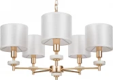 Люстра подвесная FR5015PL-05G из серии Tiana от компании Freya регулируется по высоте и устанавливается на металлический крюк. Люстра прекрасно подойдет в качестве источника основного света для гостиной, спальни, кухни, оформленных в стиле модерн. Основной цвет модели - бежевый, материал арматуры - металл, керамика. Люстра имеет 5 плафонов со свечением вверх, материал изготовления - ткань, ПВХ. Модель оснащена цоколем E14 (5xE14), имеет 5 лампочек с общей мощностью 200W и напряжением 220V. Светильник поддерживает подключение диммера. Габариты: высота - 330 мм, диаметр - 620 мм, длина подвеса - 1000 мм. Лампочки в комплект не входят. Лучшая цена и условия доставки на Freya FR5015PL-05G в интернет-магазине Fedomo.ru.