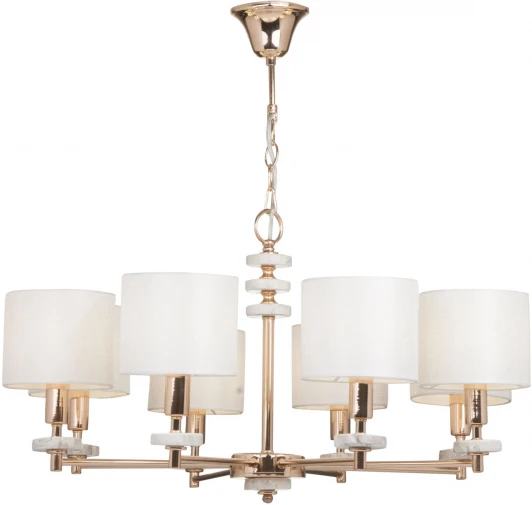 Люстра подвесная FR5015PL-08G из серии Tiana от компании Freya регулируется по высоте и устанавливается на металлический крюк. Люстра прекрасно подойдет в качестве источника основного света для гостиной, спальни, кухни, оформленных в стиле модерн. Основной цвет модели - бежевый, материал арматуры - металл, керамика. Люстра имеет 8 плафонов со свечением вверх, материал изготовления - ткань, ПВХ. Модель оснащена цоколем E14 (8xE14), имеет 8 лампочек с общей мощностью 320W и напряжением 220V. Светильник поддерживает подключение диммера. Габариты: высота - 330 мм, диаметр - 720 мм, длина подвеса - 1000 мм. Лампочки в комплект не входят. Лучшая цена и условия доставки на Freya FR5015PL-08G в интернет-магазине Fedomo.ru.