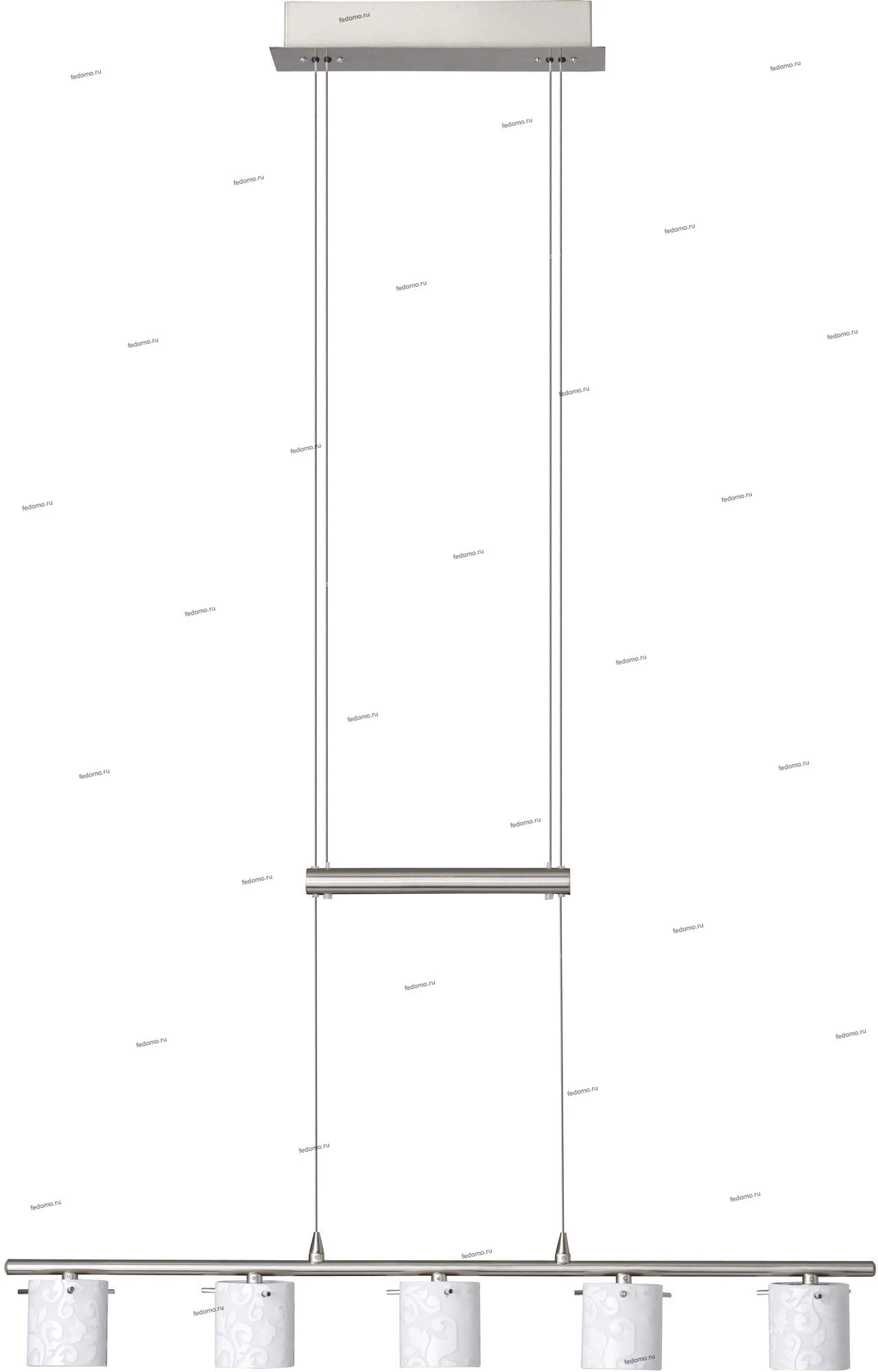 Подвесной светильник G32373/05 из серии Brilliant Mailin от компании Brilliant подойдет для освещения гостиной, кафе, кухни, над кухонным островом, над обеденным столом, оформленных в стиле современный, техно. Изделие обладает матовой поверхностью, материал плафона - стекло. Рассчитан на 5 лампочек с цоколем G4 и освещает площадь до 7 кв. м. Модель с регулировкой по высоте. Лучшая цена и условия доставки на Brilliant Mailin G32373/05 в интернет-магазине Fedomo.ru.