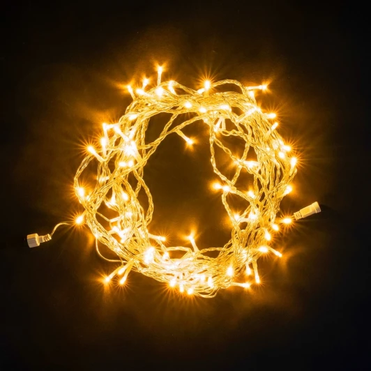 Гирлянда Нить 10м Желтая 220В, 100 LED, Провод Прозрачный ПВХ, IP54