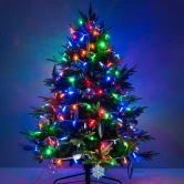 Гирлянда состоит из светодиодов красного, зеленого, желтого и синего цвета. Каждый пятый светодиод мерцает с интервалом 0,5 секунд. За счет этого эффекта гирлянда становится динамичной. Гирлянда оснащена вилкой и работает от сети 220 В / 50 Гц.