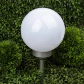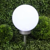 Классическая модель садового светильника в виде сферы. Мягкое свечение холодного белого света послужит прекрасным украшением при оформлении садовых дорожек и клумб.