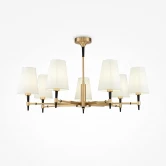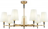 Металлическая арматура, гальванизация в цвет латуни. Часть элементов окрашена в черный цвет. Абажуры из белого текстиля, нанесенного на ПВХ. Источник света - лампа с цоколем Е14.