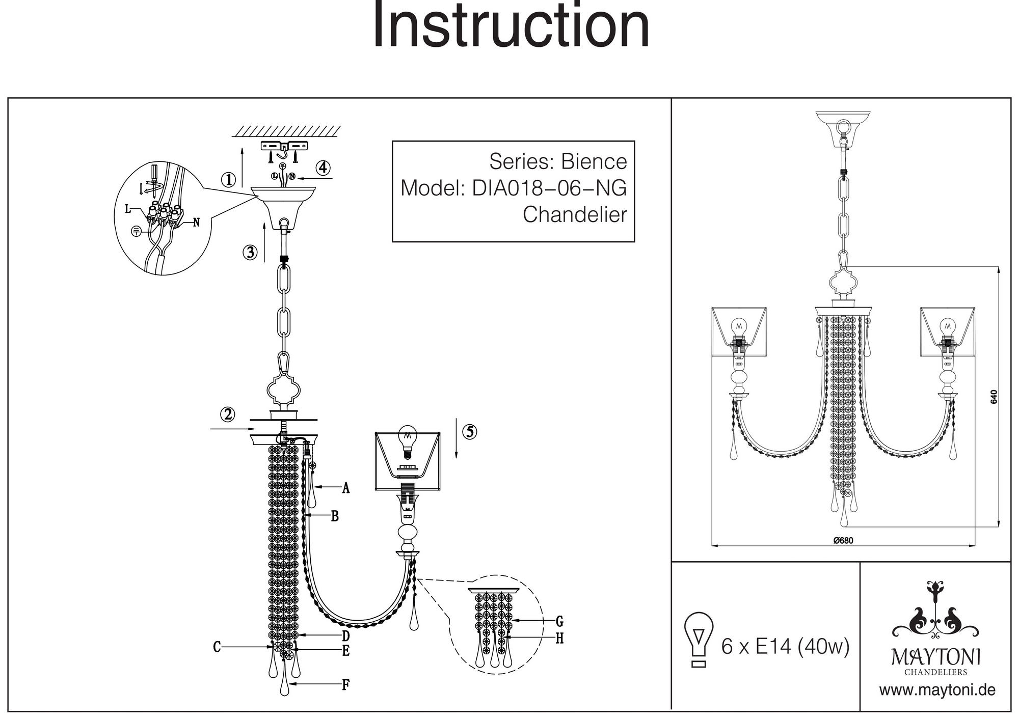 Люстра подвесная H018-PL-06-NG из серии Bience от компании Maytoni устанавливается на металлический крюк. Люстра прекрасно подойдет в качестве источника основного света для гостиной, спальни, кабинета, оформленных в стиле модерн, арт-деко. Основной цвет модели - бежевый, материал арматуры - металл. Люстра имеет 6 абажуров. Модель оснащена цоколем E14, имеет 6 лампочек с общей мощностью 240W и напряжением 220V. Светильник поддерживает подключение диммера. Габариты: высота - 1040 мм, диаметр - 680 мм. Лучшая цена и условия доставки на Maytoni H018-PL-06-NG в интернет-магазине Fedomo.ru.