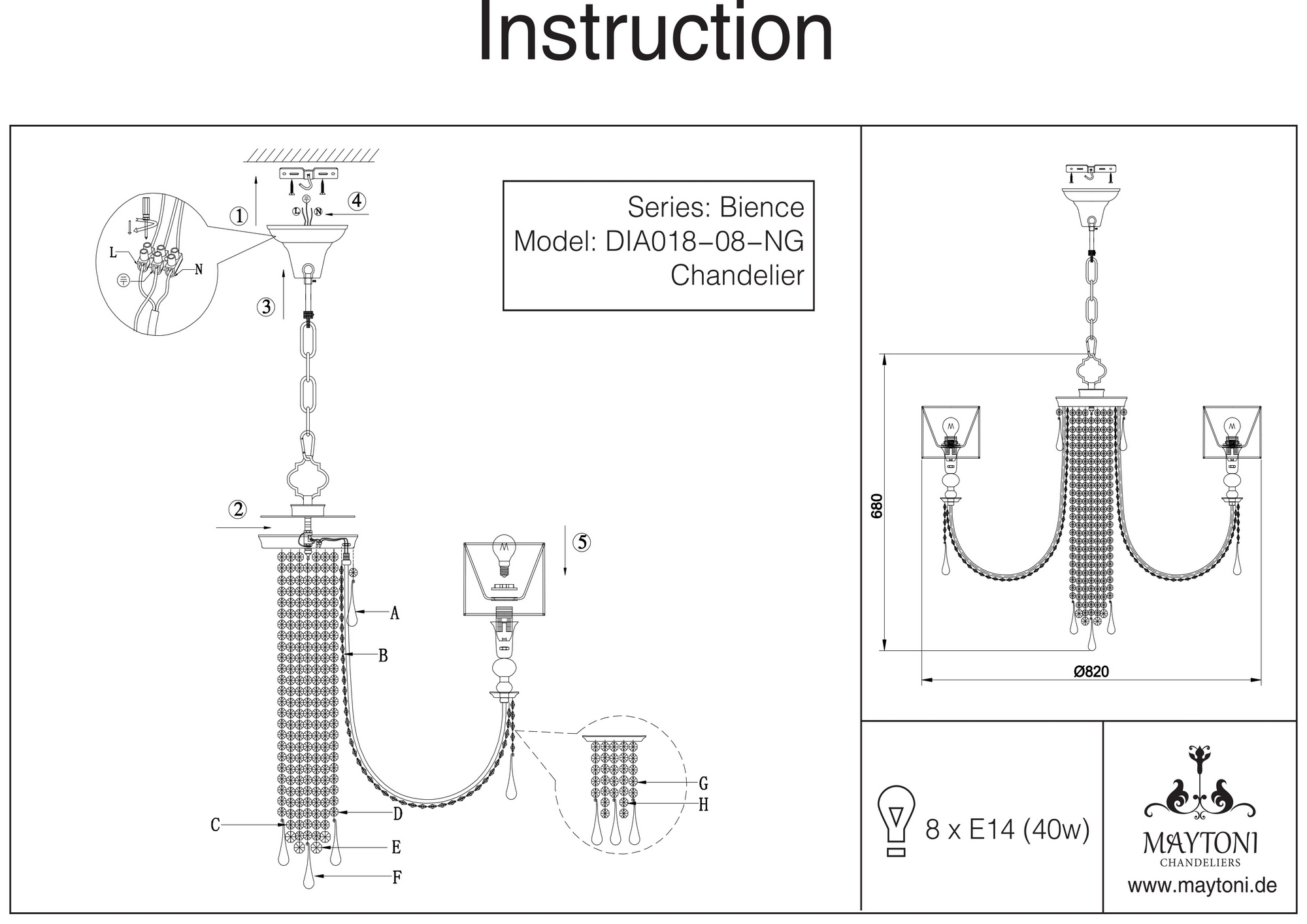 Люстра подвесная H018-PL-08-NG из серии Bience от компании Maytoni устанавливается на металлический крюк. Люстра прекрасно подойдет в качестве источника основного света для гостиной, спальни, кабинета, оформленных в стиле модерн, арт-деко. Основной цвет модели - бежевый, материал арматуры - металл. Люстра имеет 8 абажуров со свечением вверх, материал изготовления - . Модель оснащена цоколем E14, имеет 8 лампочек с общей мощностью 320W и напряжением 220V. Светильник поддерживает подключение диммера. Габариты: высота - 970 мм, диаметр - 820 мм. Лучшая цена и условия доставки на Maytoni H018-PL-08-NG в интернет-магазине Fedomo.ru.