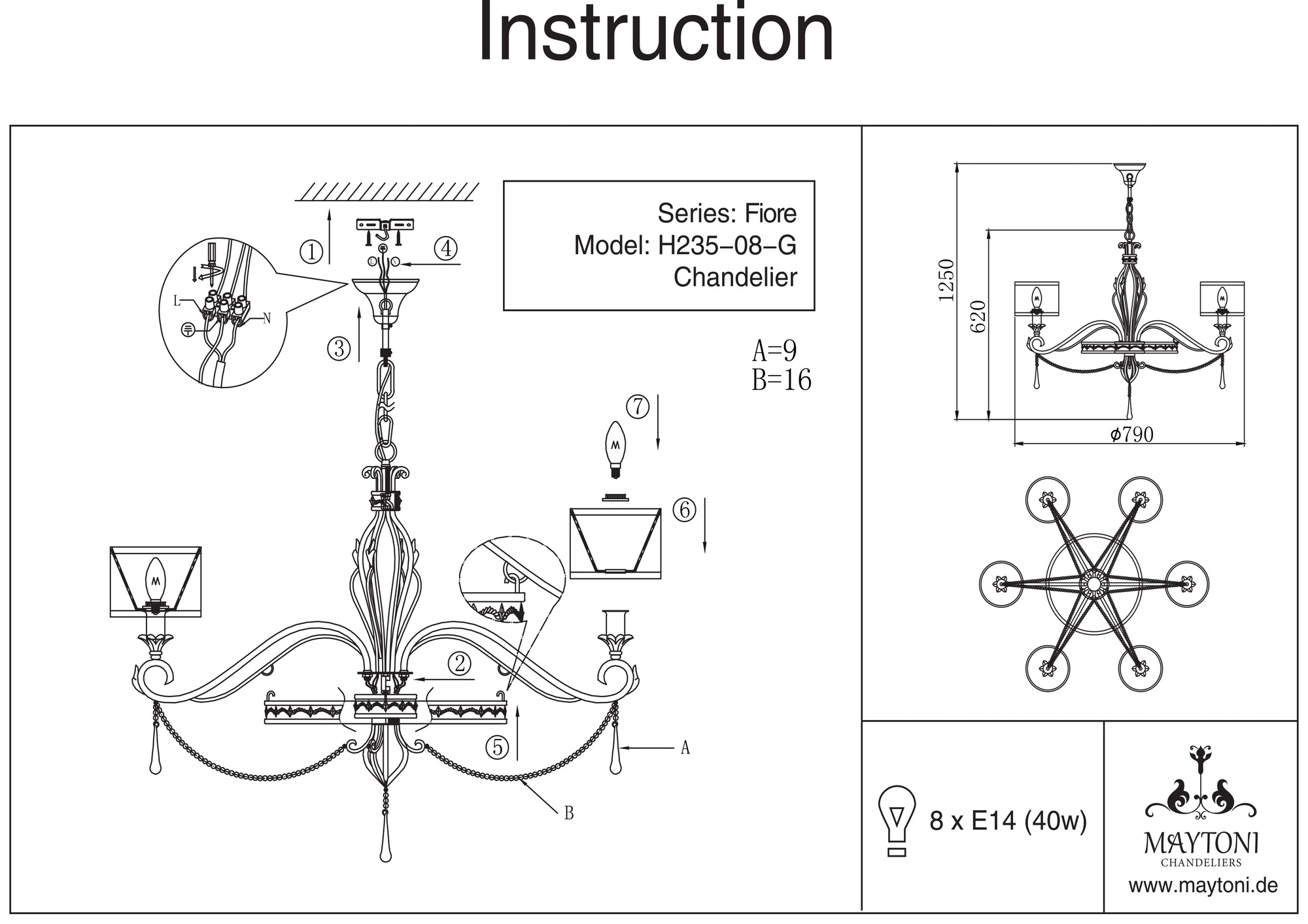 Люстра подвесная H235-08-G из серии Fiore от компании Maytoni устанавливается на металлический крюк. Люстра прекрасно подойдет в качестве источника основного света для гостиной, холла, спальни, кабинета, оформленных в стиле модерн, арт-деко. Основной цвет модели - белый, материал арматуры - металл. Люстра имеет 8 абажуров, материал изготовления - ткань. Модель оснащена цоколем E14 (8xE14), имеет 8 лампочек с общей мощностью 320W и напряжением 220V. Светильник поддерживает подключение диммера. Габариты: высота - 1140 мм, диаметр - 910 мм, длина подвеса - 400 мм. Лампочки в комплект не входят. Лучшая цена и условия доставки на Maytoni H235-08-G в интернет-магазине Fedomo.ru.