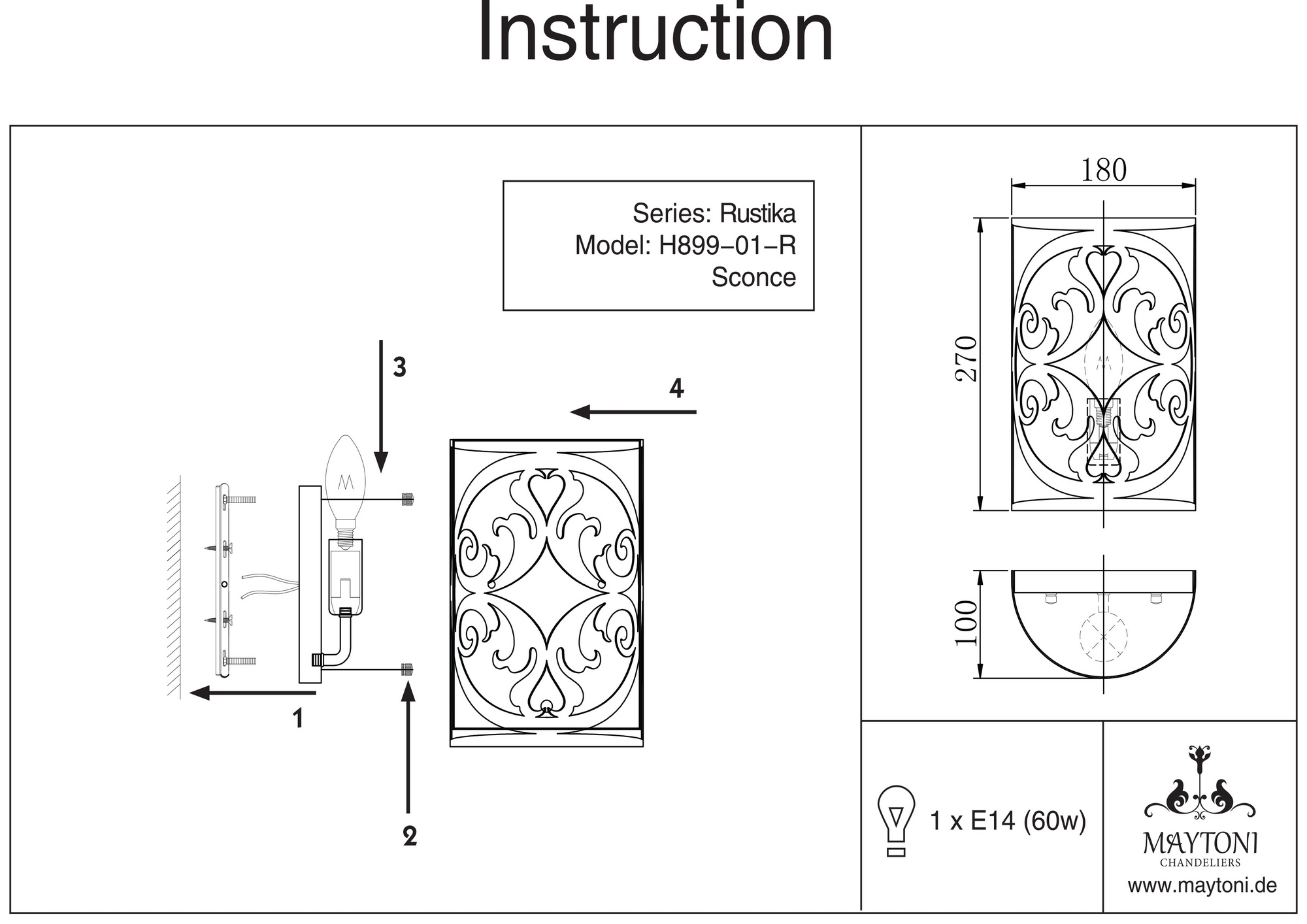 Настенный светильник H899-01-R из серии Maytoni Rustika от компании Maytoni подойдет для освещения прихожей и коридора, кабинета, оформленных в стиле классический. Основной цвет изделия - коричневый, материал плафона - металл. Рассчитан на 1 лампочку с цоколем E14 и освещает площадь до 3 кв. м. Модель поддерживает установку диммера. Лучшая цена и условия доставки на Maytoni Rustika H899-01-R в интернет-магазине Fedomo.ru.
