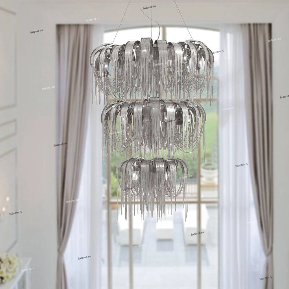 Люстра подвесная большая каскадная HEAT SP10+8+6 из серии Heat от компании Crystal Lux регулируется по высоте и устанавливается на монтажную пластину. Современная люстра украшена металлической цепочкой и прекрасно подойдет в качестве источника основного света для гостиной, прихожей и коридора, кафе, холла, оформленных в стиле арт-деко. Основной цвет модели - хром, материал арматуры - металл. Люстра имеет 3 яруса, 3 декоративных плафона со свечением вниз, материал изготовления - матовый металл. Модель оснащена цоколем G9 (24xG9), имеет 24 лампочки с общей мощностью 1440W и напряжением 220V. Светильник поддерживает подключение диммера. Габариты: высота - 860 мм, диаметр - 800 мм. Лучшая цена и условия доставки на Crystal Lux HEAT SP10+8+6 в интернет-магазине Fedomo.ru.
