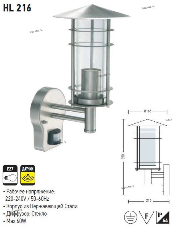 HL216 Бра уличное с датчиком движения Horoz, 1 плафон, хром с прозрачным