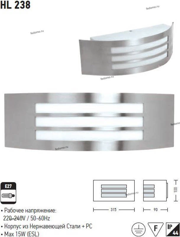 HL238 (075-009-0002) Светильник настенный уличный Horoz Mango, 1 плафон, никель с белым