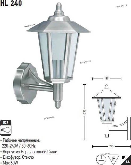 HL240 (075-006-0001) Бра уличное Horoz Akasya, 1 плафон, никель с прозрачным