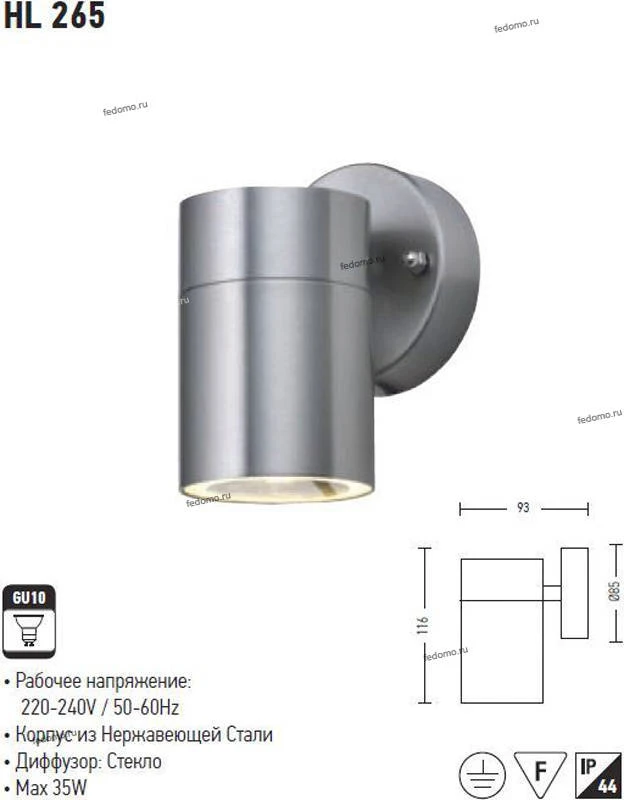 HL265 (075-008-0001) Светильник настенный уличный Horoz Manolya, 1 плафон, никель с прозрачным
