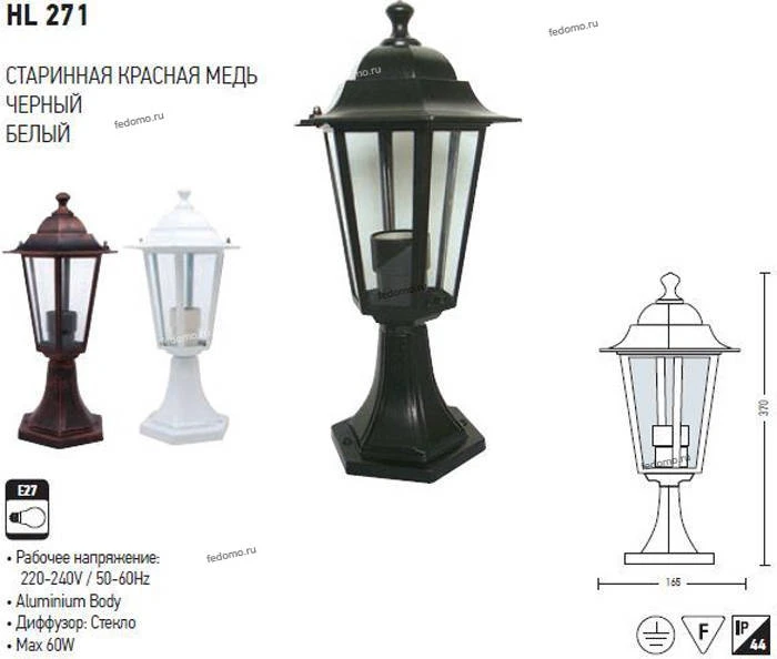 HL271 (075-012-0002) copper Столб уличный Horoz Erguvan, 1 плафон, медь с черным и прозрачным