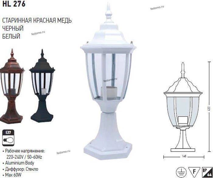 HL276 (075-013-0002) black Столб уличный Horoz Leylak, 1 плафон, черный с прозрачным