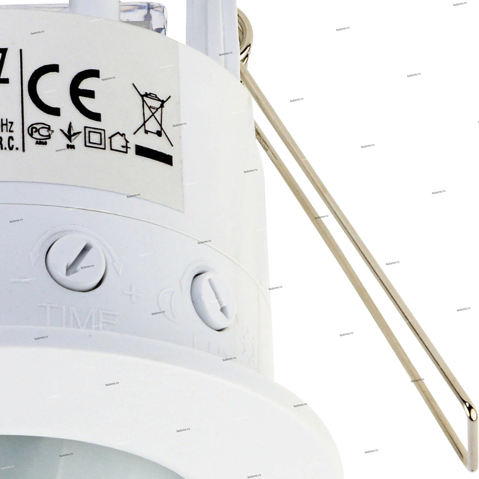 Датчик движения рассчитан на использование внутри помещений. Максимальная мощность нагрузки составляет 1200W. Угол действия датчика движения: 360°. Продолжительность подачи электропитания на потребитель регулируется таймером срабатывания от 10 секунд до 7 минут. Дальность действия: 6 метров. Датчик движения монтируется в любые типы подвесных потолков, а также в гипсокартонные перегородки. Процесс установки датчика аналогичен монтажу точечного светильника.