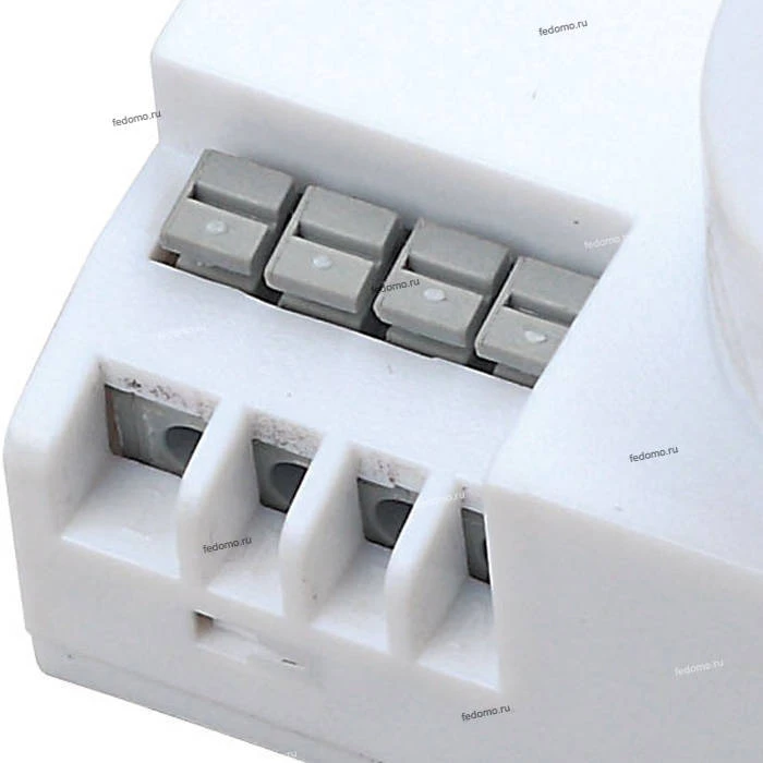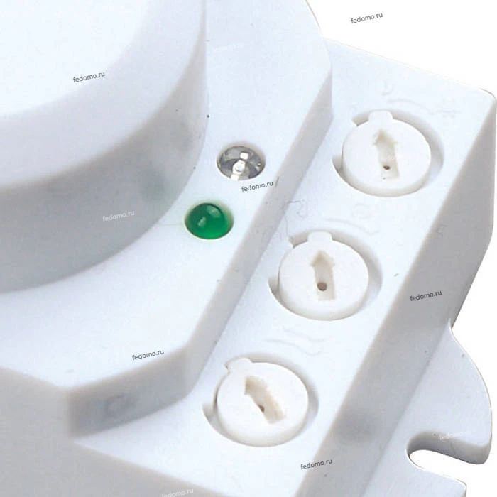 Накладной датчик движения легко монтируется на любую поверхность и гармонично вписывается в любой интерьер. Максимальная мощность нагрузки составляет 1200W. Угол действия датчика движения: 360°. Продолжительность подачи электропитания на потребитель регулируется таймером срабатывания от 10 секунд до 12 минут. Дальность действия: 8 метров. Скорость обнаружения движения от 0,6 до 1,5 м/с.