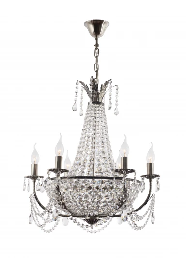 Люстра подвесная хрустальная Recetto E 1.6.6.200 NH из серии Recetto от компании Dio D'Arte устанавливается на металлический крюк. Классическая люстра в виде подсвечника украшена хрусталем Asfour и прекрасно подойдет в качестве источника основного света для гостиной, кафе, холла, оформленных в стиле арт-деко. Основной цвет модели - никель, материал арматуры - металл. Модель оснащена цоколем E27,E14 (4xE14,6xE27), имеет 6,4 (10) лампочек с общей мощностью 520W и напряжением 220V. Светильник поддерживает подключение диммера. Габариты: высота - 700 мм, диаметр - 650 мм. Лампочки в комплект не входят. Лучшая цена и условия доставки на Dio D'Arte Recetto E 1.6.6.200 NH в интернет-магазине Fedomo.ru.