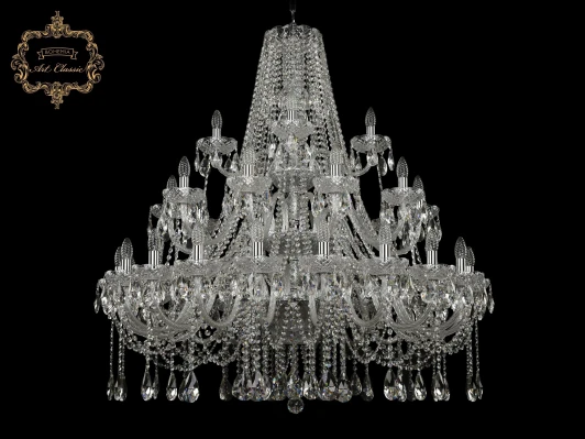 Люстра подвесная большая хрустальная 11.12.20+10+5.400.3d.Cr.Sp от компании Art Classic устанавливается на металлический крюк. Классическая люстра в виде подсвечника украшена хрусталем и прекрасно подойдет в качестве источника основного света для холла, зала, оформленных в стиле барокко. Основной цвет модели - прозрачный, материал арматуры - металл, хрусталь. Модель оснащена цоколем E14 (35xE14), имеет 35 лампочек с общей мощностью 1400W и напряжением 220V. Светильник поддерживает подключение диммера. Габариты: высота - 1220 мм, диаметр - 1180 мм, длина подвеса - 400 мм. Лампочки в комплект не входят. Лучшая цена и условия доставки на Art Classic 11.12.20+10+5.400.3d.Cr.Sp в интернет-магазине Fedomo.ru.