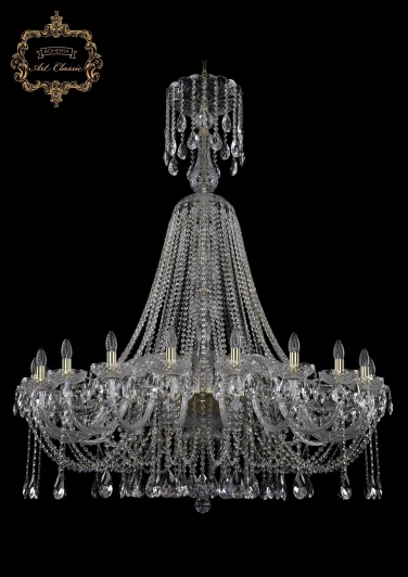 Люстра подвесная большая хрустальная 11.12.20.460.XL-162.Gd.Sp от компании Art Classic устанавливается на металлический крюк. Классическая люстра в виде подсвечника украшена хрусталем и прекрасно подойдет в качестве источника основного света для холла, зала, оформленных в стиле барокко. Основной цвет модели - прозрачный, материал арматуры - металл, хрусталь. Модель оснащена цоколем E14 (20xE14), имеет 20 лампочек с общей мощностью 800W и напряжением 220V. Светильник поддерживает подключение диммера. Габариты: высота - 1620 мм, диаметр - 1340 мм, длина подвеса - 450 мм. Лампочки в комплект не входят. Лучшая цена и условия доставки на Art Classic 11.12.20.460.XL-162.Gd.Sp в интернет-магазине Fedomo.ru.