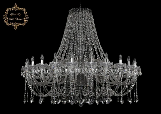 Люстра подвесная большая хрустальная 11.12.24.530.Cr.Sp от компании Art Classic устанавливается на металлический крюк. Классическая люстра в виде подсвечника украшена хрусталем и прекрасно подойдет в качестве источника основного света для холла, зала, оформленных в стиле барокко. Основной цвет модели - прозрачный, материал арматуры - металл, хрусталь. Модель оснащена цоколем E14 (24xE14), имеет 24 лампочки с общей мощностью 960W и напряжением 220V. Светильник поддерживает подключение диммера. Габариты: высота - 1240 мм, диаметр - 1500 мм, длина подвеса - 450 мм. Лампочки в комплект не входят. Лучшая цена и условия доставки на Art Classic 11.12.24.530.Cr.Sp в интернет-магазине Fedomo.ru.