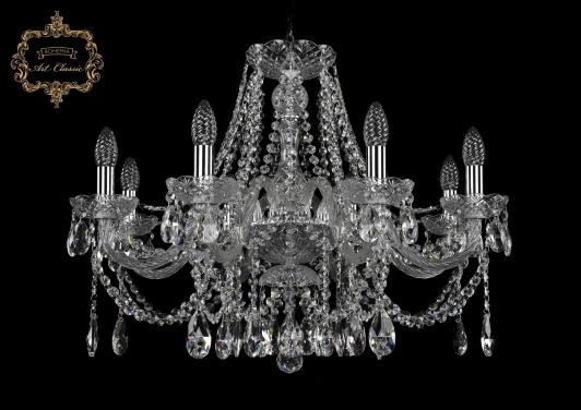Люстра подвесная хрустальная 11.12.8.240.Cr.Sp от компании Art Classic устанавливается на металлический крюк. Классическая люстра в виде подсвечника украшена хрусталем и прекрасно подойдет в качестве источника основного света для холла, зала, оформленных в стиле барокко. Основной цвет модели - прозрачный, материал арматуры - металл, хрусталь. Модель оснащена цоколем E14 (8xE14), имеет 8 лампочек с общей мощностью 320W и напряжением 220V. Светильник поддерживает подключение диммера. Габариты: высота - 480 мм, диаметр - 700 мм, длина подвеса - 350 мм. Лампочки в комплект не входят. Лучшая цена и условия доставки на Art Classic 11.12.8.240.Cr.Sp в интернет-магазине Fedomo.ru.