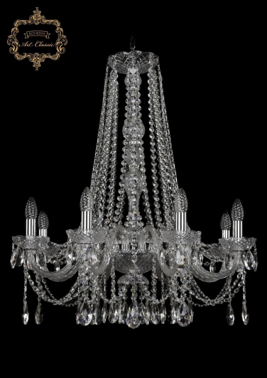 Люстра подвесная хрустальная 11.12.8.240.h-78.Cr.Sp от компании Art Classic устанавливается на металлический крюк. Классическая люстра в виде подсвечника украшена хрусталем и прекрасно подойдет в качестве источника основного света для холла, зала, оформленных в стиле барокко. Основной цвет модели - прозрачный, материал арматуры - металл, хрусталь. Модель оснащена цоколем E14 (8xE14), имеет 8 лампочек с общей мощностью 320W и напряжением 220V. Светильник поддерживает подключение диммера. Габариты: высота - 780 мм, диаметр - 700 мм, длина подвеса - 350 мм. Лампочки в комплект не входят. Лучшая цена и условия доставки на Art Classic 11.12.8.240.h-78.Cr.Sp в интернет-магазине Fedomo.ru.