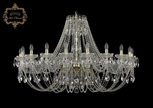 Люстра подвесная большая хрустальная 11.21.20.460.Gd.Sp от компании Art Classic устанавливается на металлический крюк. Классическая люстра в виде подсвечника украшена хрусталем и прекрасно подойдет в качестве источника основного света для холла, зала, оформленных в стиле барокко. Основной цвет модели - прозрачный, материал арматуры - металл, хрусталь. Модель оснащена цоколем E14 (20xE14), имеет 20 лампочек с общей мощностью 800W и напряжением 220V. Светильник поддерживает подключение диммера. Габариты: высота - 840 мм, диаметр - 1340 мм, длина подвеса - 450 мм. Лампочки в комплект не входят. Лучшая цена и условия доставки на Art Classic 11.21.20.460.Gd.Sp в интернет-магазине Fedomo.ru.