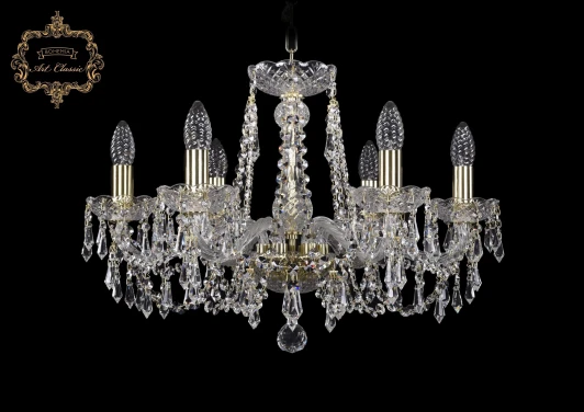 Люстра подвесная хрустальная 11.23.6.200.Gd.Dr от компании Art Classic устанавливается на металлический крюк. Классическая люстра в виде подсвечника украшена хрусталем и прекрасно подойдет в качестве источника основного света для холла, зала, оформленных в стиле барокко. Основной цвет модели - прозрачный, материал арматуры - металл, хрусталь. Модель оснащена цоколем E14 (6xE14), имеет 6 лампочек с общей мощностью 240W и напряжением 220V. Светильник поддерживает подключение диммера. Габариты: высота - 400 мм, диаметр - 600 мм, длина подвеса - 250 мм. Лампочки в комплект не входят. Лучшая цена и условия доставки на Art Classic 11.23.6.200.Gd.Dr в интернет-магазине Fedomo.ru.