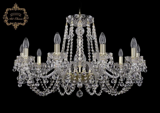 Люстра подвесная хрустальная 11.26.10.300.Gd.B от компании Art Classic устанавливается на металлический крюк. Классическая люстра в виде подсвечника украшена хрусталем и прекрасно подойдет в качестве источника основного света для холла, зала, оформленных в стиле барокко. Основной цвет модели - прозрачный, материал арматуры - металл, хрусталь. Модель оснащена цоколем E14 (10xE14), имеет 10 лампочек с общей мощностью 400W и напряжением 220V. Светильник поддерживает подключение диммера. Габариты: высота - 530 мм, диаметр - 870 мм, длина подвеса - 400 мм. Лампочки в комплект не входят. Лучшая цена и условия доставки на Art Classic 11.26.10.300.Gd.B в интернет-магазине Fedomo.ru.