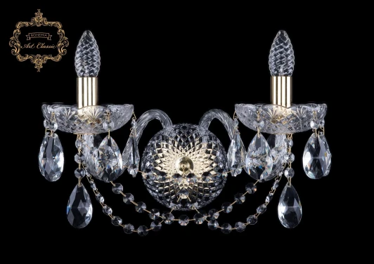 Бра хрустальное 10.11.2.165.XL.Gd.Sp от компании Art Classic украшено хрусталем и отлично подойдет в качестве дополнительного источника света для гостиной, спальни, зала, выполненных в стиле классический, барокко. Основной цвет модели - золото, прозрачный, материал арматуры - металл, хрусталь. Бра в виде подсвечника имеет 2 лампочки, оснащено цоколем E14 с общей мощностью 80W и напряжением 220V. Светильник поддерживает подключение диммера. Лампочки в комплект не входят. Лучшая цена и условия доставки на Art Classic 10.11.2.165.XL.Gd.Sp в интернет-магазине Fedomo.ru.