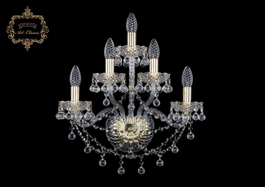 Бра хрустальное 10.26.2+2+1.165.Gd.B от компании Art Classic украшено хрусталем и отлично подойдет в качестве дополнительного источника света для гостиной, холла, зала, выполненных в стиле классический, барокко. Основной цвет модели - золото, прозрачный, материал арматуры - металл, хрусталь. Бра в виде подсвечника имеет 5 лампочек, оснащено цоколем E14 с общей мощностью 200W и напряжением 220V. Светильник поддерживает подключение диммера. Лампочки в комплект не входят. Лучшая цена и условия доставки на Art Classic 10.26.2+2+1.165.Gd.B в интернет-магазине Fedomo.ru.