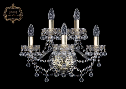 Бра хрустальное 10.26.3+2.165.Gd.B от компании Art Classic украшено хрусталем и отлично подойдет в качестве дополнительного источника света для гостиной, холла, зала, выполненных в стиле классический, барокко. Основной цвет модели - золото, прозрачный, материал арматуры - металл, хрусталь. Бра в виде подсвечника имеет 5 лампочек, оснащено цоколем E14 с общей мощностью 200W и напряжением 220V. Светильник поддерживает подключение диммера. Лампочки в комплект не входят. Лучшая цена и условия доставки на Art Classic 10.26.3+2.165.Gd.B в интернет-магазине Fedomo.ru.