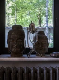 Настольная лампа из латуни на треноге со стеклянным колпачком - это просто любовь с первого взгляда. Пять винтов крепко прижимают стеклянную колбу к латунному основанию через силиконовую прокладку. Они легко откручиваются и замена лампы доставляет просто эстетическое наслаждение. Барашки-цветочки по бокам плафона регулируют его угол наклона. Все элементы выполнены вручную с применением современных технологий. Тот самый случай, когда это не только дорого выглядит, но и отлично работает.
