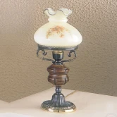 росписной плафон с виду напоминает керосиновую лампу. Каркас-дерево кофейного цвета и литая латунь высокого качества. Бесподобно вольется в классический интерьер и современном. Светильник создаст атмосферу комфорта.