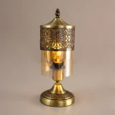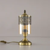 Восточная настольная лампа Citilux Эмир CL467813 бронзового цвета. Основание металлическое, плафон стеклянный, прозрачный, оттенок шампань (медовый). В модели одна лампочка с цоколем Е27, максимальной мощностью для ламп накаливания 75Вт. Высота светильника 34см, диаметр 13см, осветит около 3,5м?. Длина шнура 1,7м, выключатель находится на расстоянии 20см от основания.